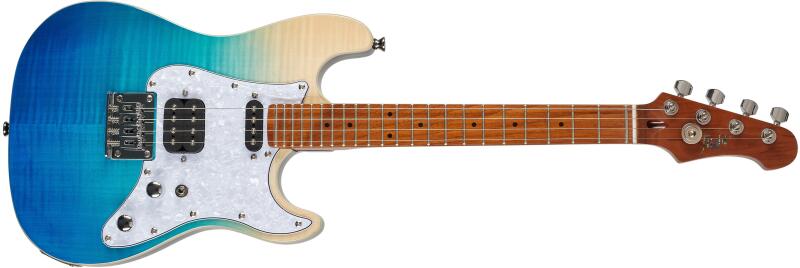 Gyártó színe: Transparent Gradient Blue, Szín: Kék, Felületi javítás: Csillogás, Ukulele típus: Tenor, Kivágás: Igen, Korpusz: Teljes masszív, Test: Hársfa, Nyak: Juharfa, Menzúra: 432 mm, Érintők száma: 22, Nullás hurláb szélessége: 35 mm, Fogólap: Juharfa, Húrláb: Rögzített, Hangszedő: Igen, Hangszedő típusa: Humbucker + Single Coil, Elektornikai model: Flight, Irá