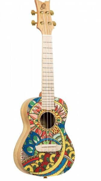 Ortega RUAR-MI koncert ukulele Art széria Fedlap: lucfenyő Test: Catalpa Nyak: Catalpa Fogólap: Juhar Híd: Juhar Hangolókulcsok: Die Cast - Gold Bund: 18 Szín: "Mystic India" egyedi dizájn