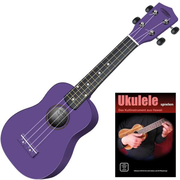 VGS 512835 Szoprán Ukulele Model 2 keményfa tető hátlap és káva juharfából juharfa nyak, hosszított juhar-fogólap 16 újezüst bund feketére pácolt juharfa híd és fogólap 333 mm-es menzúra, teljes hossz 530 mm nyereg szélessége 34 mm, test mélysége 55 mm, szélessége 160 mm nikkelezett Kluson-stílusú hangolókulcsok, nylonhúrok Original Aquila nylonhúrok ajánlott hangolá
