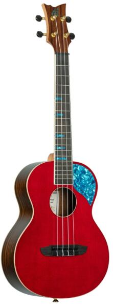 Ortega RUGH-SRT Ghost Series Tenor Ukulele 4 húros Az Ortega Guitars Ukulele GHOST SERIES feltűnõ fényes tetejével magával ragad. A színes felsõk (fekete, óceáni, vörösre festett és platina) gyönyörűen harmonizálnak a rózsafa fényes hátoldalával és oldalaival. Figyelemre méltó, hogy ez az ukulele lenyűgözõ kék gyöngy "rúd" betétekkel és kék gyöngyházvédõvel ren