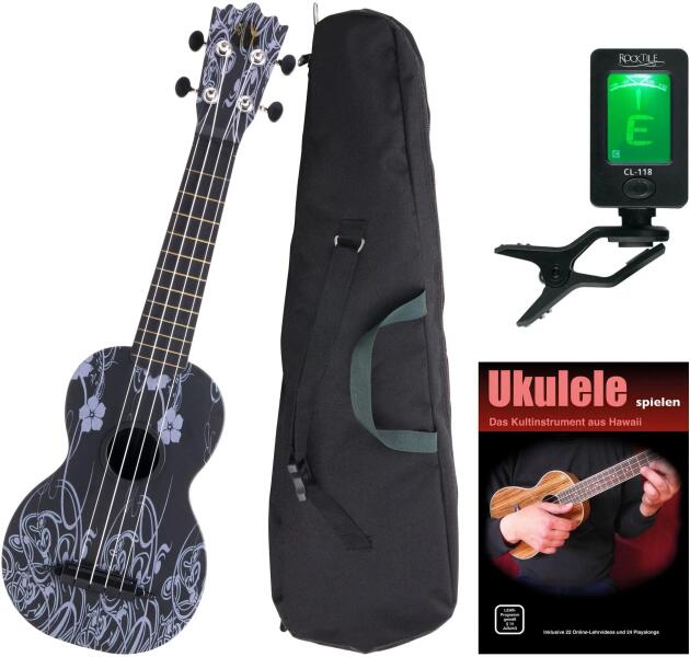 6-húros modell!Testméret: tenorFedlap: fenyőHát és oldal: tömör Paulownia Nyak: okoumeFogólap: purpleheartMenzúra: 17" (432 mm)Nyakszélesség a húrvezetőnél: 48 mmHúrláb: purpleheartKulcsok: fekete, die-castHúr: Ibanez ...