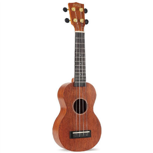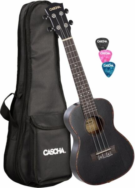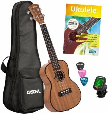 Koncert ukulele készlet, amely magában foglal mindent, amire a tanulónak szüksége van: prémium koncert ukulele mahagóni testtel és nyakkal, hordtáska 5 mm vastag párnázással, három pengető, praktikus hangológép és egy oktatókönyv Ukulele - fast and easy learning, amely tartalmaz kottát, oktató anyagot ami QR kód beolvasásával lesz elérhető, angol nyelven. Az ukulele kivá