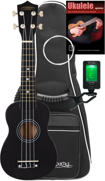 Ukulele szett: A szett tartalmaz egy szoprán ukulelét, 3 db pengetőt és egy hordtáskát Test: Hársfa Húrok: Nylon Aquila Húrláb: Rózsafa