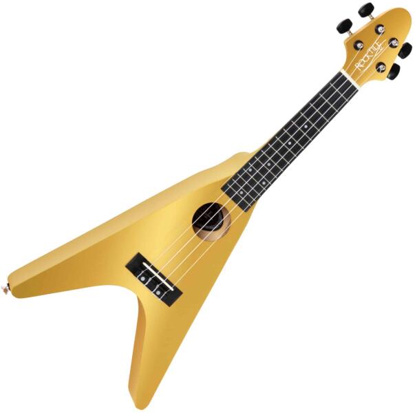 Szoprán ukulele, Designer széria, egyedi dizájn, a hanglyuk az oldalsó lemezen található, és lehetővé teszi a zenész számára, hogy jobban élvezze a játékot - a hang egy része a lyukon keresztül közvetlenül a fülébe jut Sengon test Jabon nyak Rózsafa fogólap Mahagóni húrláb 12 érintő Menzúra 346 mm Vintage aranyozott mechanika GraphTech NuBone XB alsó nyereg Tartozék