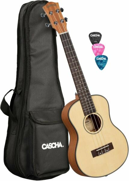 Ez egy automatizált szoftver általi fordítás:A Solid Top Ukulele már a kezdetektől meggyőzi nagyon jó kivitelezését. A felső lap tömör lucfenyőből készült. A fa gyönyörű és egyenletes szerkezete nem csak optikai fénypont. A Spruce teljes hangzást és erős visszajelzést biztosít. Mivel kicsit lágyabb, könnyebben átadja a rezgéseket. A nemes matt felületet kifejezetten