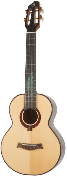 Csúcsminőségű 6 húros elektronikás ukulele tenor méretben A hagyományos Ukuleléhez képest a 'C' és 'A' hangok vannak beduplázva, oktáv különbséggel szólalnak meg egyszerre, így egy egyedülálló hangzásvilágot teremtve. Tömör fa a test minden oldala, fishman elektronika beépített hangolóval, felsőkategóriás kidolgozottsággal Tartozék: Félkemény tok