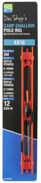Preston 4x16 Carp Shallow Pole Rig Rakós Botos Úszó Előkötött Szerelékkel: Dura oldalsó szemmel Tartós anyagból Reflo Power zsinórral Könnyen használható 2 mm-es üreges antennával és üvegszálas szárral A legkifinomultabb alkatrészekből összeállított rakósbotos előkötött szerelék. Ezek a pontyos szerelékek tökéletesen alkalmasak, bármilyen vízterületen. Az úszó