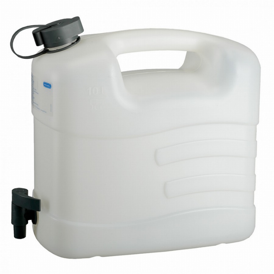 Vizeskanna, 10 l‑es, csappal, polietilén, (HxSZxM) 348 x 175 x 319 mm Egy 10 literes víztartály leeresztő szeleppel. A tartály egy univerzális megoldás, amely mindenütt jól jön, ahol nem áll rendelkezésre folyóvíz. Fel van szerelve egy vízcsappal, amelynek köszönhetően nem vész el víz. Polietilénből készült, amelynek köszönhetően nagyon tartós, és minden körülmény