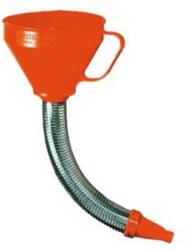 stabil fogantyúval, magas peremmel, kivehető rézszűrővel rendelkező nagy átfolyású műanyag tölcsér flexibilis fémcsővel