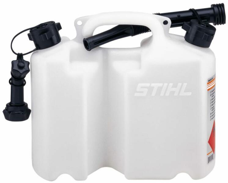 ÜZEMANYAG ÉS FŰRÉSZLÁNC OLAJ EGY TARTÁLYBAN A STIHL kombinált tartályok hatékony megoldást jelentenek, ha hosszú ideig dolgozik STIHL benzines láncfűrészével. Szakemberek és magánfelhasználók bármikor feltölthetik láncfűrészeiket vagy olajat a robusztus dupla tartályból, ENSZ jóváhagyással a mellékelt kifolyócső segítségével. A gyermekbiztos záróelemeknek kösz