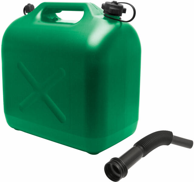 Handy 10892B üzemanyagkanna, 20l KANNA, levegőztetős, benzines kanna kiöntőcsővel Kiváló minőségű, erős üzemanyagkanna kiömlésmentes tömített zárókupakkal, valamint rugalmas kiöntőcsővel. Specifikáció: lezáró kupak tömítéssel menetes, tömítéssel ellátott kiöntőcsővel Méretek:350 x 230 x 370 mm Cső mérete:300 mm (Ø 20 mm) Űrtartalom:20 liter