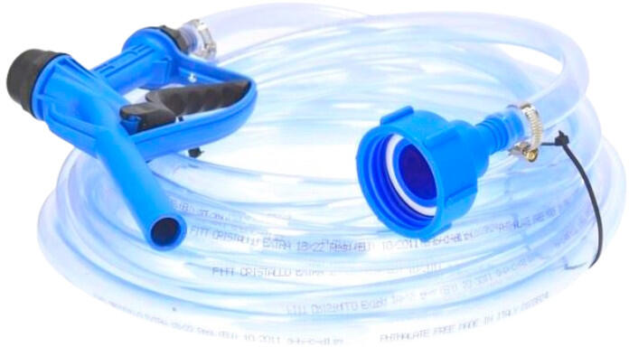 AdBlue pisztoly PVC tömlővel és csatlakozó adapterrel tartályhoz. Teljes mértékben korrózióálló (műanyag), kifejezetten AdBlue folyadékhoz. Kibiztosítási lehetőséggel és akasztó kampóval. A tömlő végén 1 colos csőmenetes hollanderrel (kb. 33 mm külső átmérő). A tartályhoz való adapter 60 x 6 mm-es külső menetre passzol (menet külméret) Tömlő hossz: 10 méter!!