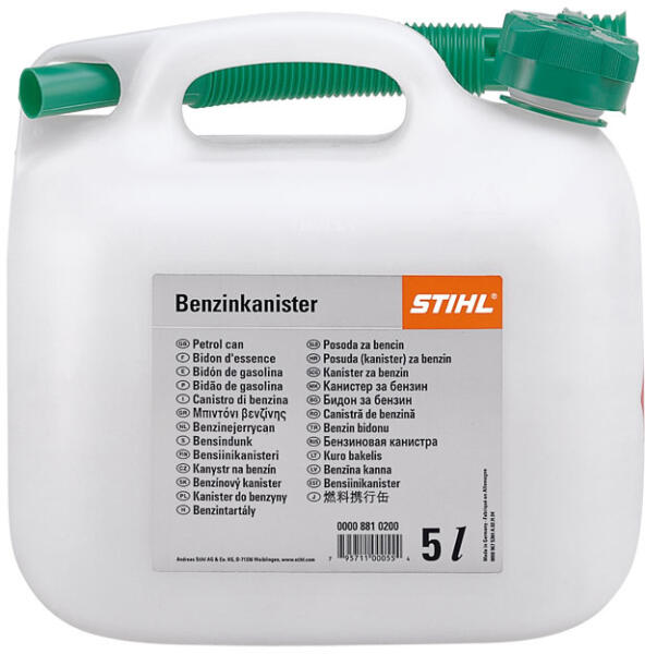 A STIHL kombinált tartályok hatékony megoldást jelentenek, ha hosszú ideig dolgozik STIHL benzines láncfűrészével. Szakemberek és magánfelhasználók bármikor feltölthetik láncfűrészeiket vagy olajat a robusztus dupla tartályból, ENSZ jóváhagyással a mellékelt kifolyócső segítségével. A gyermekbiztos záróelemeknek köszönhetően a STIHL kombinált tartályban lévő f