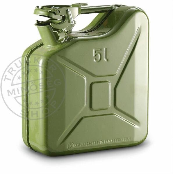 Fém üzemanyag kanna (marmon kanna). Űrtartalom: 5 liter Szabványosított biztonsági tetővel. Változó kivitelben kapható, emiatt a termék kis mértékben eltérhet a képeken láthatótól.