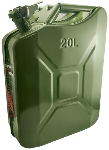 Benzinkanna, 20lit Speciálisan üzemanyag (benzin és gázolaj) szállítására, kémiai és mechanikai hatásoknak ellenálló műanyagból. A kannába maximum 20 liter üzemanyag tölthető, túltölteni tilos!