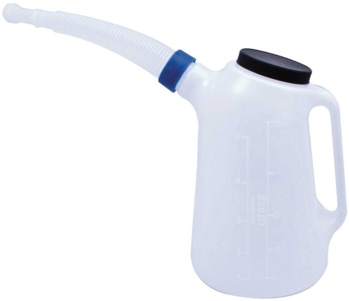 Olajbetöltő kanna flexibilis szárral és menetes zárósapkával. Szűk helyeken is lehetővé teszi az olaj feltöltést tölcsér használata nélkül. A maradék a kannában is pormentesen tárolható (menetes védőkupak a kannára és a csőre is). Áttetsző kivitele és mérőskálája segítségével nyomon követhető az olaj mennyisége. Strapabíró kivitel, ipari felhasználásra. M