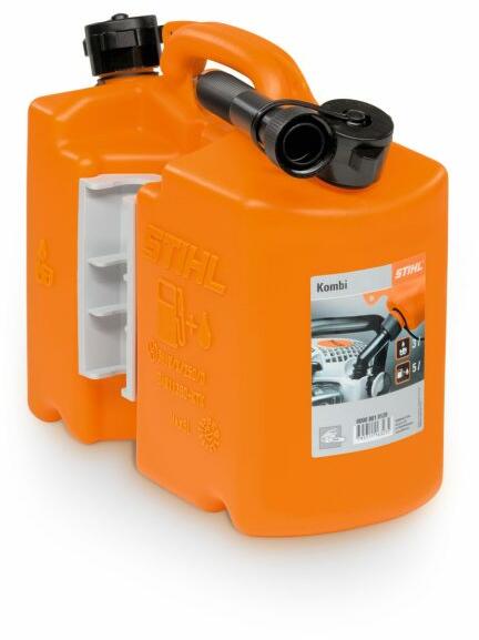 A STIHL kombinált tartályok hatékony megoldást jelentenek, ha hosszú ideig dolgozik STIHL benzines láncfűrészével. Szakemberek és magánfelhasználók bármikor feltölthetik láncfűrészeiket vagy olajat a robusztus dupla tartályból, ENSZ jóváhagyással a mellékelt kifolyócső segítségével. A gyermekbiztos záróelemeknek köszönhetően a STIHL kombinált tartályban lévő f