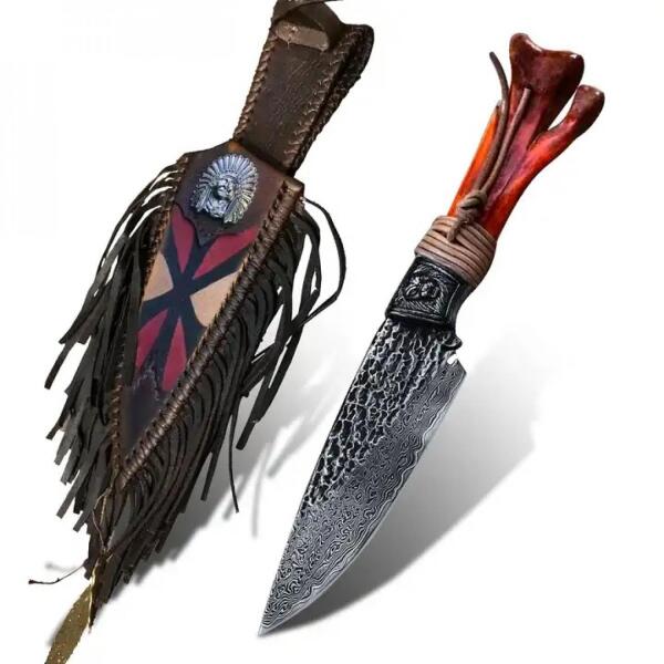 MASTERPIECE Ryotaro Damaszk vadászkés Minőségien kidolgozott, kézzel készített vadászkés damaszk acélból (damascus steel). A kés pengéjét 66 réteg rozsdamentes acél réteg alkotja, melyeket összekovácsolnak majd áthajtogatják és újra összekovácsolnak, így egyedi mintázatot kap, valamint kivételes szívósságot és ellenállóságot biztosítanak. E rétegek közé egy k