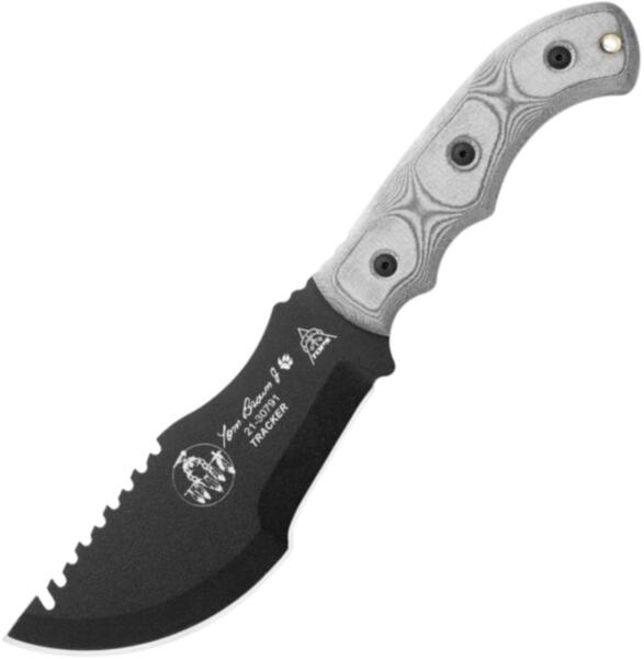 Termék részletekA TOPS Knives Tom Brown Tracker egy különösen sokoldalú túlélőkés. A lenyűgöző 7,5 mm-es pengevastagság biztosítja, hogy ez a kés komoly igénybevételt is kibírjon. A kés hátoldala fogazott, így fűrészelésre is alkalmas. Az első fogazat valamivel mélyebb, mint a többi, ami lehetővé teszi például, hogy drótkerítést vágjunk át vele. Az él közepén található re-c