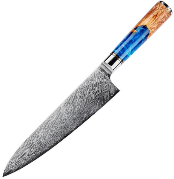 Hakusan damaszk konyhakés-Big Chef Minőségien kidolgozott konyhakés szuper áron! A kés többfajta acélból, váltakozó rétegelt eljárással állítják elő. Ezek a rétegek úgynevezett kovácsolt hegesztéssi módszerrel állnak össze (ennél a késnél 67 réteg). Használatukkor vegyék figyelembe, hogy a kések nagyon élesek és élelmiszer vágására valók (nem fagyasztott éle