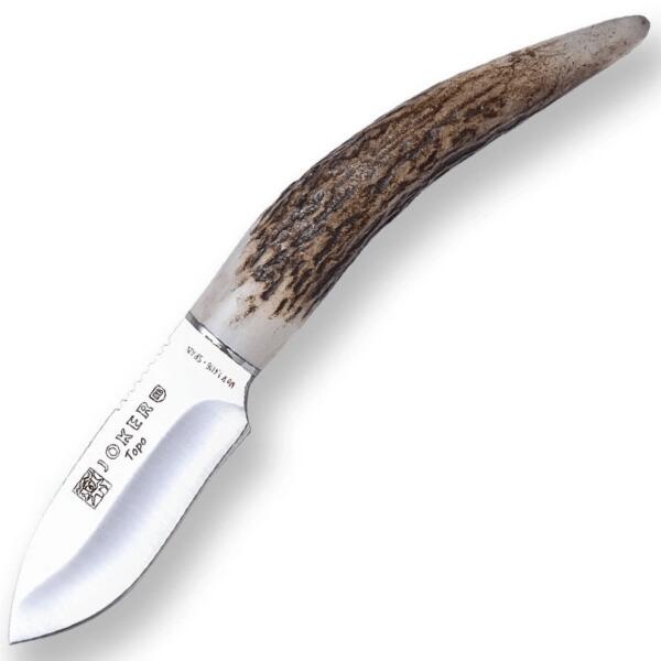 A Joker Topo CC57 egy kiváló minőségű, kisebb méretű, fix pengés kés, amelyet nyakban vagy övre csíptetve lehet viselni. Sokoldalúan használható, és különféle szabadtéri kirándulásokra magaddal viheted. A penge drop point kialakítású, és szatén felületkezelést kapott. Az X50CrMoV15 acélból (1.4116) készült. A markolat érdekes, ívelt formájú szarvasagancsból ké
