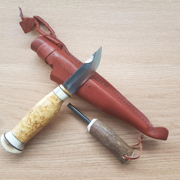 A Wood Jewel kések a finn Kolari kisvárosban készülnek. A Wood Jewel késeket Kauko Raatini tervezte, és tükrözik a számi törzs stílusát és hagyományait. A mindössze 7,5 cm hosszú penge sokféle munkára alkalmas. A hátoldalán kivágással rendelkezik, így még több szikrát kelthet a székkel. 0,8% szénacélból készült, HRC 59 -ig edzett. A formázott fogantyú göndör ny