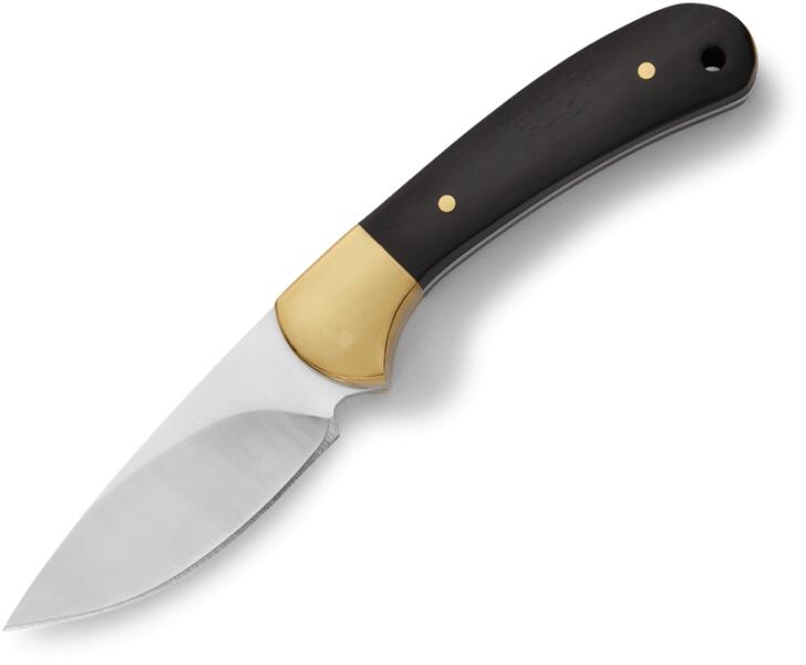 Az egyszerű masszív BUCK kés nagyszerű többcélú eszköz különféle szabadtéri tevékenységekhez, mint például vadászat, túrázás, grillezés vagy kempingezés. Az elegáns dizájn és a kiváló minőségű anyagok stílusos és megbízható kiegészítővé teszik. A fulltang szerkezetű penge 420HC rozsdamentes acélból készül. A fogantyú ébenfából és sárgarézből kész