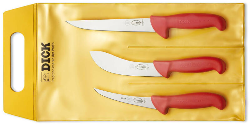 A készlet tartalma: 13 centis csontozókés 15 centis nyúzókés 18 centis szeletelőkés Vadászati célokra kifejlesztett, élelmiszeriparban is használható, ergonómikus kialakítású műanyag markolattal ellátott kések. Ha egy másik vadászoknak szánt késkészlet érdekelne, javasoljuk nézd meg ezt: Vadász kés készlet Dick vadászkés készlet 3db-os -8255610 tulajdonságai: Az E