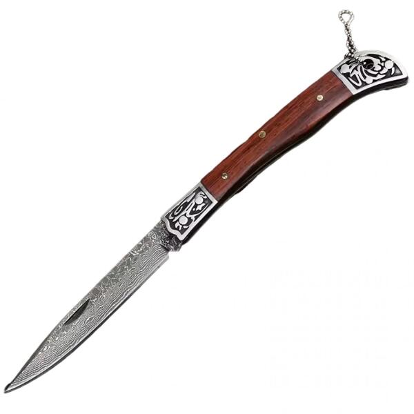 Damaszk outdoor összecsukható kés DMC016 Bemutatjuk ezt az elegáns összecsukható kést, mely a hagyományos kézművességet és a modern dizájnt kombinálja kialakításában. Ez a kés ideális a gyűjtők, outdoor tevékenységet kedvelők számára, de azok számára is, akik értékelik a minőségi és stílusos használati eszközöket. A pengéje damaszk mintázatú. Mindennapi hasz