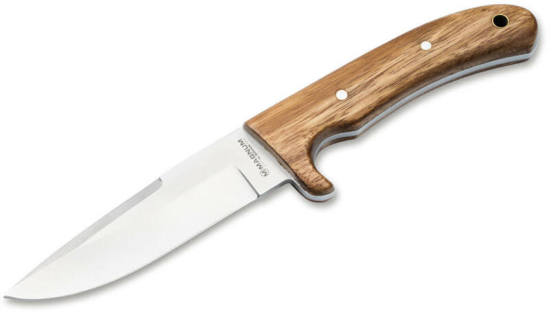 A bevált Magnum Elk Hunter egy megbízható kültéri kés, és a pengehosszával meggyőzi a vadonban és a mindennapi életben egyaránt. A 440A rozsdamentes acél penge szatén felülettel rendelkezik. A penge hátoldalán található meghosszabbított ricasso modern megjelenést kölcsönöz a késnek. A robusztus fulltang konstrukció ergonómikusan kialakított Zebrawood nyéllel van ellát