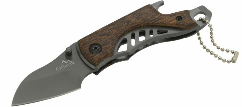 A nyél fogantyúi tökéletesen utánozzák a fát, és a test vonzó perforációjával együtt kellemes, apró kést alkotnak, amely bármely zsebben elfér. A kés hátoldalát egy sörnyitó és egy ék egészíti ki, például egy anya töréséhez. A pengén lévő kiemelkedésnek köszönhetően a kés egy kézzel is kinyitható. A kés biztonsági zárral van felszerelve, amelyet a hüvel