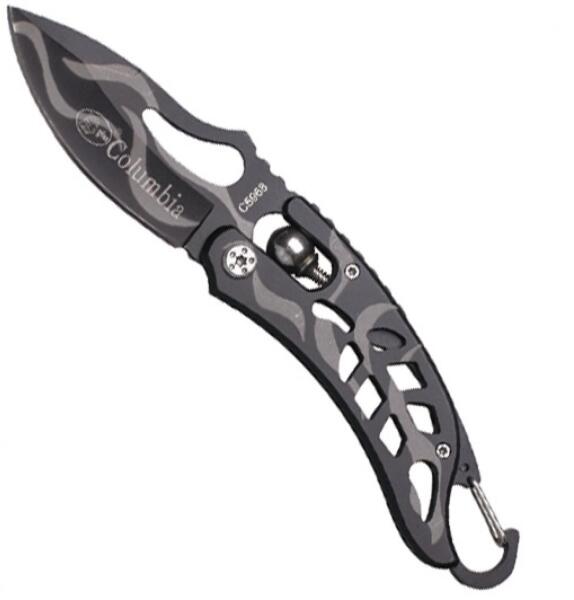 COLUMBIA Outdoor összecsukható kés-17/10cm Különleges összecsukható zsebkés a legjobb minőségű anyagokból. Tökéletesen kézbe illik, kiváló munkaeszköz. Mindennapi használatra. Ideális társ outdoor-tevékenységek kedvelőinek, halászoknak vagy vadászoknak. A pengét farkas-ábrázolás és COLUMBIA felirat díszíti. A kés nyomógombos zárszerkezetű - biztonsági záras,