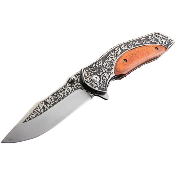 Outdoor összecsukható kés-21/12cm Összecsukható zsebkés a legjobb minőségű anyagokból. Tökéletesen kézbe illik, kiváló munkaeszköz. Mindennapi használatra. Ideális társ outdoor-tevékenységek kedvelőinek, halászoknak vagy vadászoknak. A kés nyomógombos zárszerkezetű - biztonsági záras, amelynél a becsukásához meg kell nyomni egy gombot a markolat alsó részén. Tul
