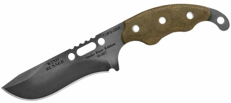 TOPS KNIVES Wind Runner Black River Washed Blade, Green Micarta WDR-01 A Wind Runner nyakkés a TOPS cég azonos nevű vadászmodelljének kisebb változata. A gyártó úgy gondolta, hogy nem mindig lehet hosszú vadászkést hordani, ezért a Wind Runner-t úgy tervezték, hogy a mindennapokban a nyakon vagy az övön hordják. Nagy sokoldalúságot és praktikusságot kínál kompakt csomagolá
