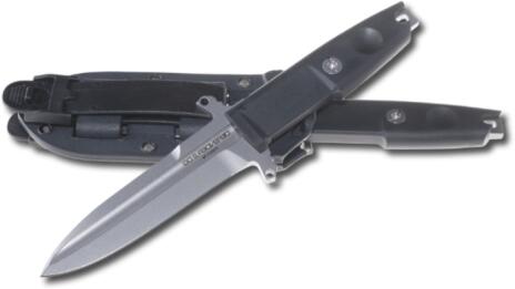 A Scout kés harci verziója az Extrema Ratio DEFENDER 2 DG STONE WASHED rendkívül vékony formájú, Bohler N690 acélból készült, szilárd pengével, Stonewash felülettel, az egész képen áthalad (teljes tangó). Kettős védőeleme van a kézvédelemhez. A fogantyú tartós és csúszásmentes, fekete fekete Forprénből készült, lyukhoz egy lyukkal. A Kydex tokkal, amely kompatibilis