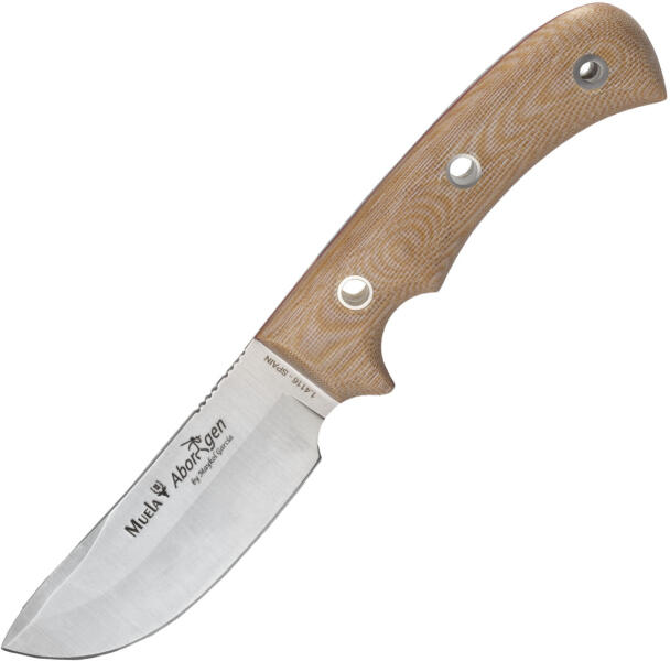 Megbízható szabadtéri kés Muela ABORIGEN-12D túrázáshoz vagy kempinghez is alkalmas. Egy darab acélból készül (teljesen megmunkálva). Rögzített pengével, sima élével, 4116 rozsdamentes acélból és ékvágással. A fogantyú anatómiai formában van egy krémes micartából, lyukhoz egy lyukkal. Szikravetővel és bőr tokkal, 7 cm hosszú ejtőernyős kábellel érkezik.
