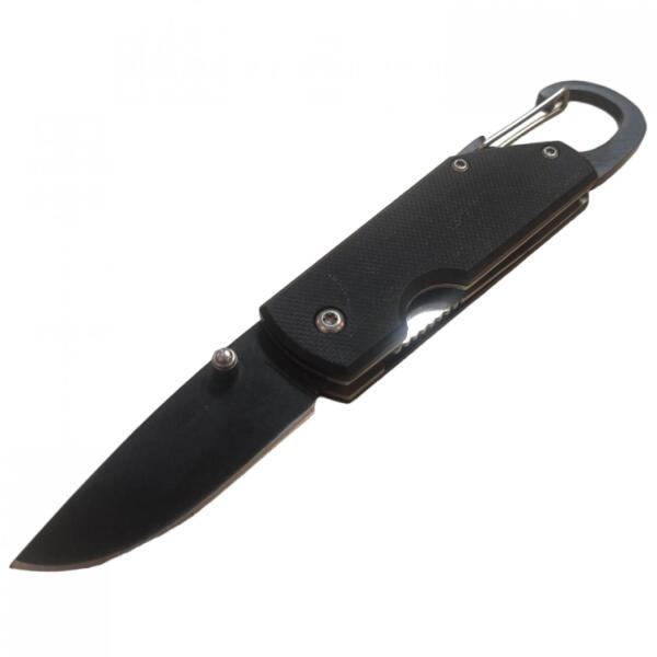 Outdoor összecsukható kés karabínerrel 15,5/10cm/Tip2 Különleges összecsukható zsebkés a legjobb minőségű anyagokból. Tökéletesen kézbe illik, kiváló munkaeszköz. Mindennapi használatra. Ideális társ outdoor-tevékenységek kedvelőinek, halászoknak vagy vadászoknak. A kés nyomógombos zárszerkezetű - biztonsági záras, amelynél a becsukásához meg kell nyomni egy gom