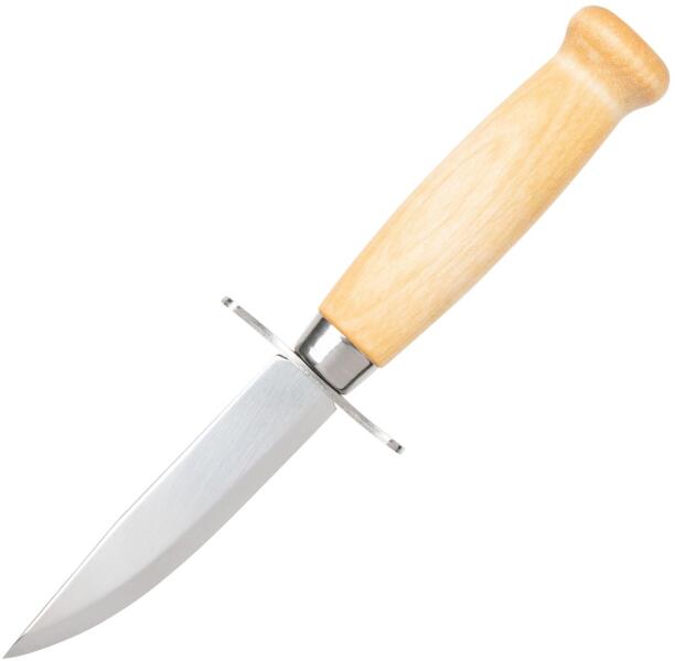 A klasszikus svéd Morakniv SCOUT kés egyszerű kialakítással a szabadtéri tevékenységek minden rajongója számára készült. A penge rozsdamentes acélból készült. A fa fogantyút fém védőburkolat egészíti ki, amely megvédi az ujjakat a sérülésektől. A késhez bőr tok tartozik.