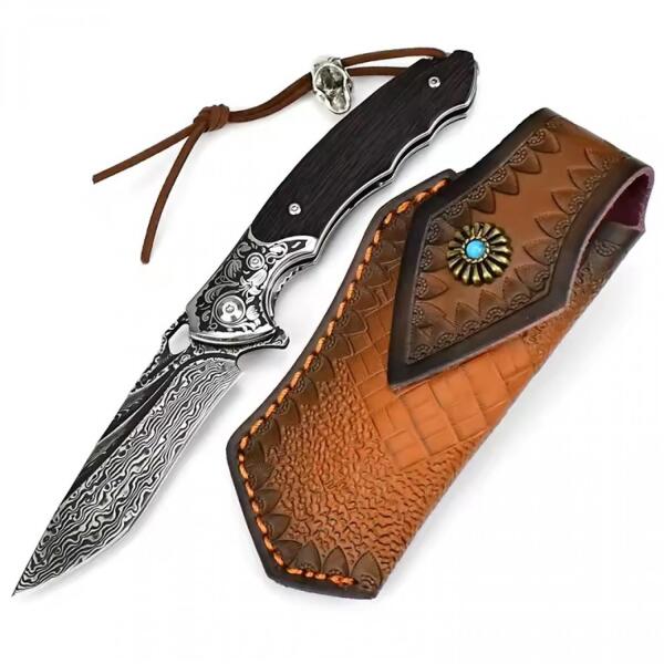 Lawson damaszk outdoor összecsukható kés Összecsukható kés, melynek pengéje látványos damaszk mintázatú. A kés markolata fekete színű fából készült, ergonomikusan kialakított a kényelmes kézben tartás érdekében. Részletgazdag mintával díszített vasalás van a pengével összekötött részén. A csomagolás része a bőrtok is, mely mintával díszített. Ez a kés bát