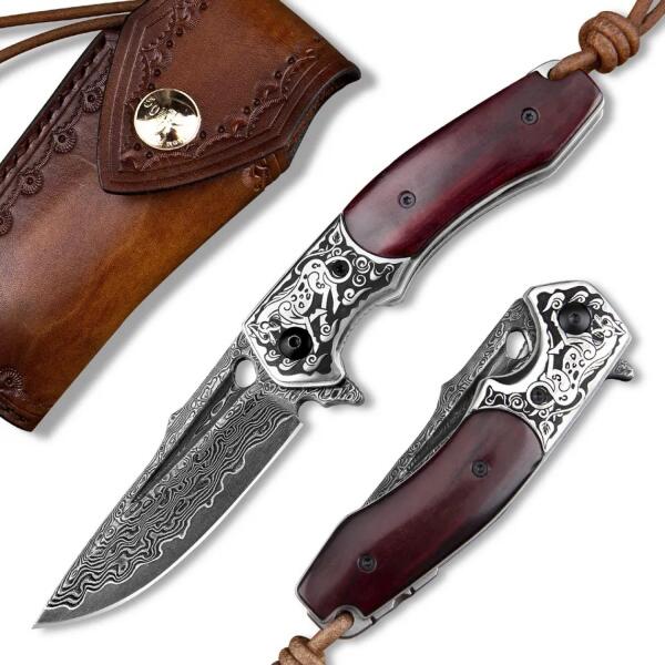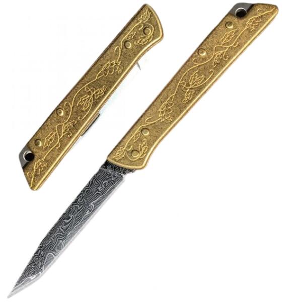 Damaszk zsebkés Damaszk zsebkés damaszk acélból (damascus steel). A kés pengéjét 66 réteg rozsdamentes acél alkotja, melyeket összekovácsolnak majd áthajtogatják és újra összekovácsolnak, így egyedi mintázatot kap, valamint kivételes szívósságot és ellenállóságot biztosítanak. E rétegek közé egy kiváló vágási tulajdonságokkal rendelkező VG-10 japán késacélb