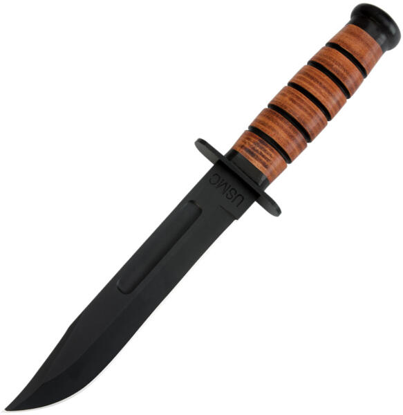 A United Cutlery vadonatúj USMC fix pengéjű kése 420-as rozsdamentes acél pengével rendelkezik, hőkezelt fekete bevonattal. A hét hüvelykes penge borotvaéles. A fogantyú valódi bőrrel van bevonva, mint a klasszikus kések, amelyeket a tengerészgyalogosok hagyományosan viseltek, és védőpajzzsal vannak kiegészítve. Ez a prémium fix pengéjű kés szép bőrtokkal érkezik.