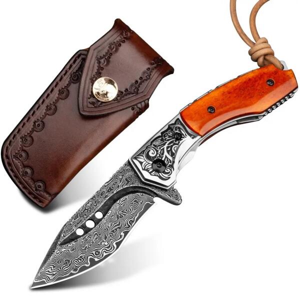 Termék részletekMASTERPIECE Yemon damaszk összecsukható vadászkés Kézzel készített MASTERPIECE Yemon összecsukható vadászkés. A kés damaszk acélból készült. A penge rétegelt acél kompozit kovácsolásból készült. Ennél a késnél 67 réteg van. Ezzel a kovácsolással egyedi minta jön létre. Ezek között a rétegek között egy VG10 acélmag van elhelyezve. A kés keménysége 60-62 HRC,