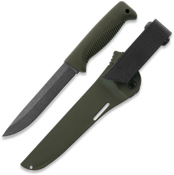 Ideális mindenes erdőjáró kés, sötét micarta markolata ellenálló, rövid lándzsahegy jellegű pengéjekönnyen irányítható. Önszorítós kydex tokjához állítható dőlésű övpanel tartozik.