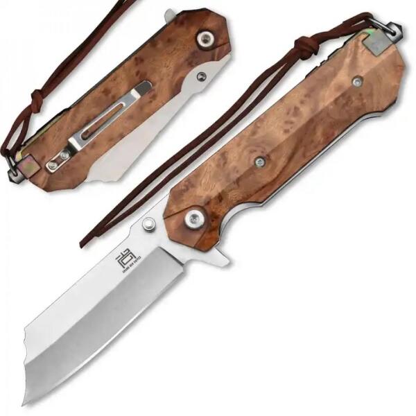 Termék részletekMASTERPIECE Samuro összecsukható vadászkés Minőségien kidolgozott, kézzel készített vadászkés kiváló minőségű, magas széntartalmú rozsdamentes acélból. Ideális ajándék minden outdoor-tevékenység kedvelőnek. A kés 60-62 HCR (Rockwella) keménységet ér el és kopásállóság valamint nagy pengestabilitás jellemzi. A kés összecsukásához meg kell nyomni a biztonsági