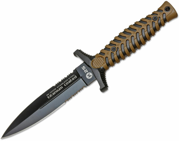 Termék részletekA robosztus 7Cr17MoV acélszerkezet kétkomponensű műanyag fogantyúba van beépítve. A mindkét oldalon élesített pengének mindkét oldalán részben fogazott széle van, amely lehetővé teszi a kötelek gyors és hatékony vágását. Lyukkal a húrhoz és kiváló minőségű nylon tokkal műanyag betéttel.