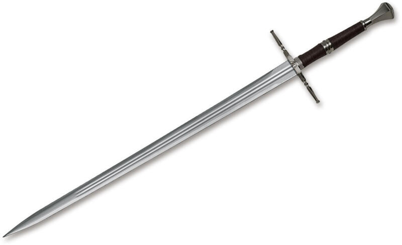 Termék részletekA Magnum Ferrum egy középkori kétkezes kard, amelyet a múltban emberek elleni harcra használtak. Rozsdamentes acélból készült, a fogantyúja kötéllel van körbetekerve. A dekoratív védőburkolat a kerítés során védelemre szolgált, a markolat masszív feje pedig tompa ütésekhez használható. A kardhoz egy tok is tartozik a könnyebb hordozhatóság érdekében.