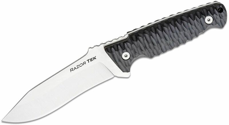 Termék részletekRazor Tek 5 Fix Knife" ívelt pengével rendelkezik, amely a hosszabb vágóél előnyeit biztosítja. Nagyszerű, közepes méretű, tömör penge vadfeldolgozáshoz, bushcrafthoz, ételkészítéshez, szeleteléshez és aprításhoz. A penge formája rendkívül ergonomikus, texturált markolatnak köszönhetően ez a kés mindig készen áll a következő kalandra. A penge 4116-os rozsdamentes