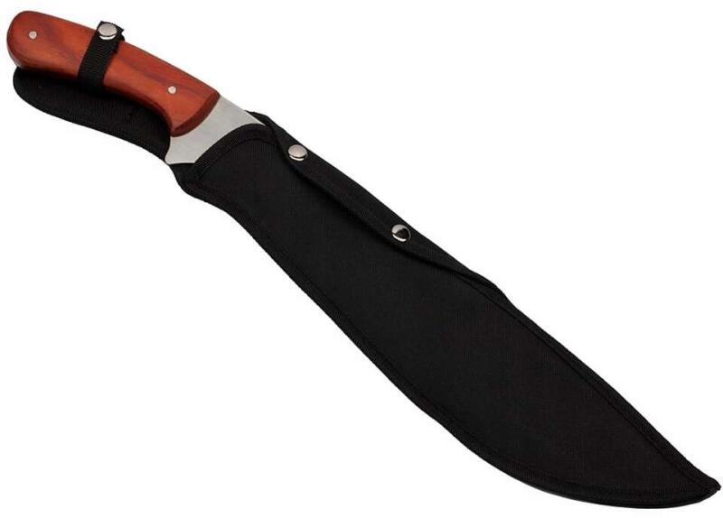 Termék részletekFoxter machete típusú kés, 47 cm, fa nyéllel, pengeburkolattal Nehéz és nagyon masszív machete, tökéletes a túléléshez. A rozsdamentes machete ideális kerti munkákhoz stb. Profilozott pengével rendelkezik, éles és megbízható. A jól illeszkedő, ergonomikus fa fogantyú lehetővé teszi, hogy biztonságosan tartsa. A készlet tartalmaz egy kényelmes tokot a kés hordozásához,