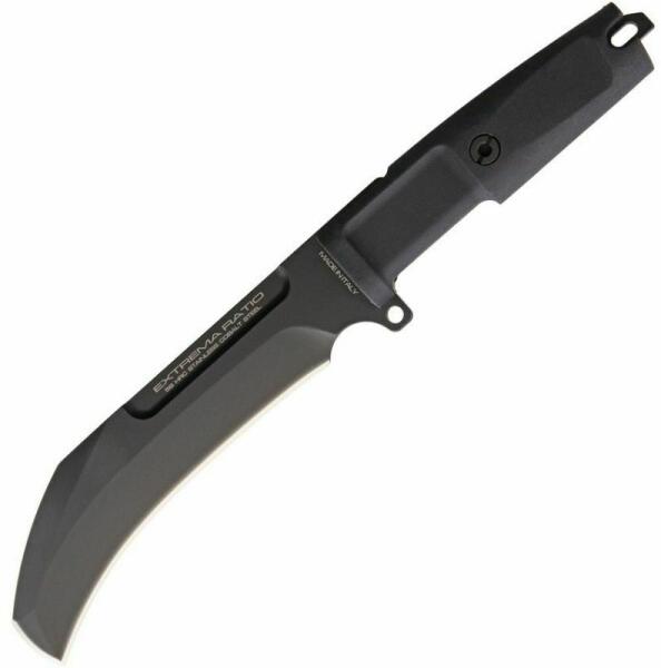 Termék részletekExtrema Ratio CORVO BLACK a chilei hadsereg hagyományos harci kés, amelyet rejtélyes eredetű önvédelemben is használnak. Hosszú, íves pengéjével közel 90 fokban van, tartós Bohler N690 acélból, fekete, nem tükröződő matt MIL-C-13924 réteggel. A fogantyútól egyoldalas kézi védelem választja el. A fogantyú csúszásgátló fekete formából készült, lyukkal ellátott húr