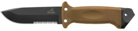 Termék részletekElőnyök és jellemzők: 25 év garancia származási hely USA súlya 309 gramm penge mérete 12.2 cm pengéje síma élű teljes hossz 24.8 cm acél típusa 420HC markolat típusa texturált gumi MOLLE kompatibilis, többféle rögzítési lehetőségű tokkal van ellátva Cerakote bevonatú penge a markolatban végigfut a penge tartózsinór rögzítő pont ]]>